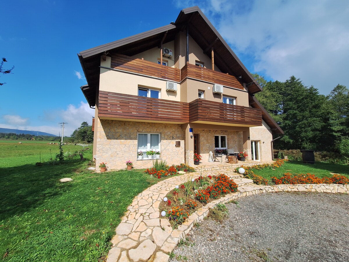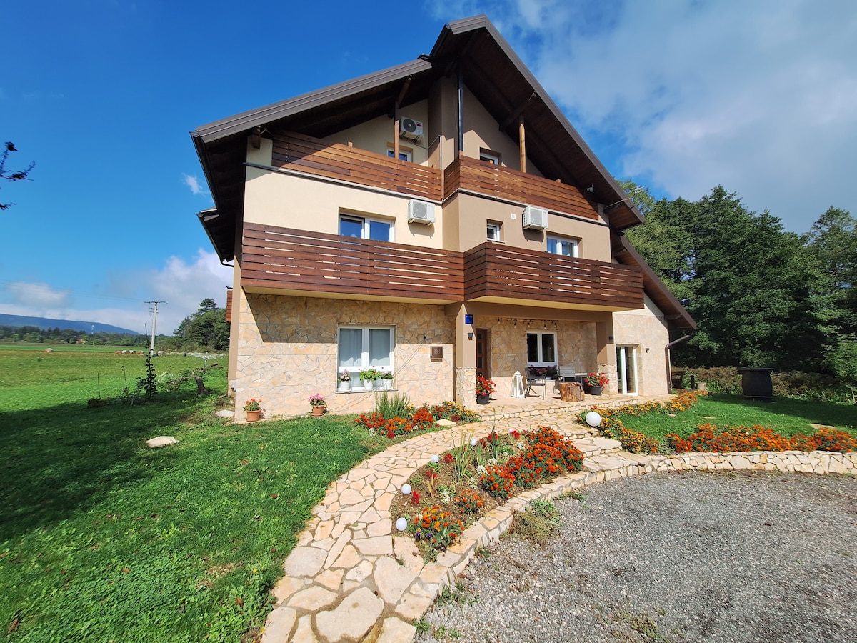This charming place is located in a picturesque village, around a 5-minute drive from National Park Plitvice Lakes. All studios have a beautiful view of nature. Fully furnished with outdoor sitting space for you to spent time relaxing after a busy day exploring lakes. Enjoy al-fresco home-cooked meals on a terrace surrounded by lush greenery. The property offers a rich buffet breakfast, and free parking is provided. Recharge your batteries and make memories with your loved ones at our place.