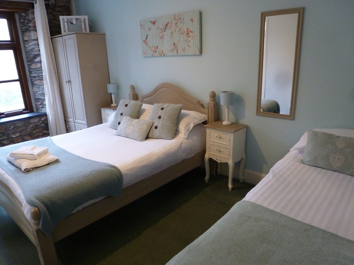 Un dormitorio más grande, cama tamaño king cómoda, baño privado, ventana, acceso para huéspedes por escaleras . nevera , instalaciones de té /café. Ventilador, calefacción. TV. Wifi . Aceptamos perros que se comportan bien por una tarifa de £ 12 por noche pagadera al reservar. Los niños solo se aceptan previa solicitud , se aplicará un cargo por noche. Revisa antes de reservar. Desayuno de cortesía de cereales, cruasanes , frutas y café disponibles en la sala de estar de los huéspedes. Desayuno cocinado a la carta en la cafetería/bar de la planta baja, de 9 a 5