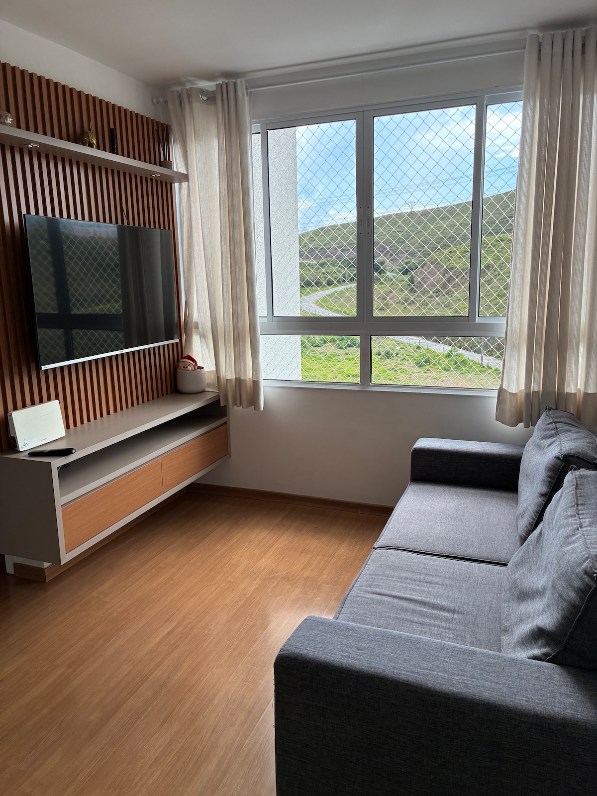 Nuevo apartamento central, decorado, apasionado. Ubicado en la plaza del gran hotel, frente a la hermosa Serra de São Domingos, donde desde la ventana se puede ver el Cristo Redentor, las Termas Antonio Carlos con su majestuoso edificio, calendario floral, parque infantil y hermosos jardines que conforman el parque Afonso Junqueiras. Frente al paisaje de la nueva novela de Globo Aparcamiento asequible, así como farmacias, supermercados, restaurantes, bancos, carriles bici, senderos para caminar y comercio variado.