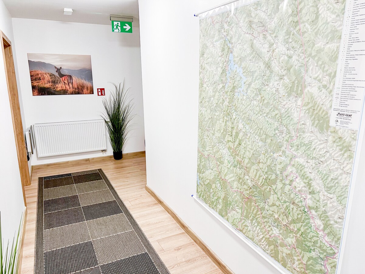 Ubicado en las prístinas montañas de Ustrzyki Dolne y a solo unos metros de la estación de esquí Gromadzyn y a poca distancia a pie de la plaza de la ciudad. El alojamiento alberga cinco habitaciones en suite con TV por cable y wifi gratuito y desayuno continental diario para los huéspedes.