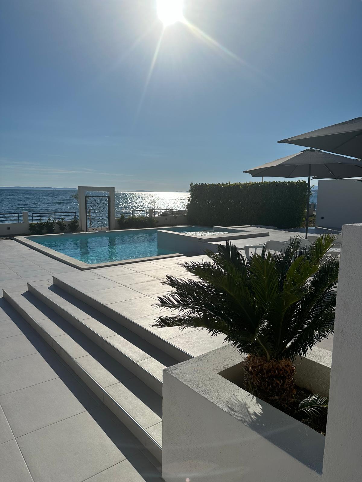 Royal is new, modern & luxury renovated apartment with jacuzzi, 50 meters away from beach. Has 50 square meters and 30 square meters terrace. Comes with 2 bedrooms, a living room, a fully eqipped kitchen with a dining area, bathroom with great shower, barbecue facilities, garage(1 car) , flat-screen TV in every room and free wi-fi. Offers a big terrace with open sea view on surrounding islands. Diving can be enjoyed nearbly. Trogir is 5 km away and Split airport 8 km from the acommodation.