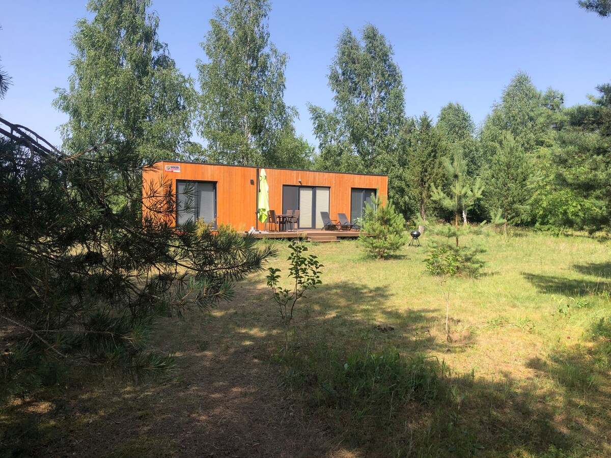 Dwa drewniane, kameralne i eleganckie domki w strefie ciszy i spokoju, oddalone od siebie tak, by nikt oprócz pobliskich drzew i ptaków nie zaglądał do Wam środka. Duża, prywatna przestrzeń przed każdym z nich. W środku salon z aneksem kuchennym (czajnik elektryczny, płyta indukcyjna, niezbędne przybory do gotowania) i dużymi oknami tarasowymi, dwie małe sypialnie i łazienka z prysznicem. Las 20 metrów przed oknami, rezerwat przyrody 50 metrów przez szutrową drogę. Spektakularne zachody słońca