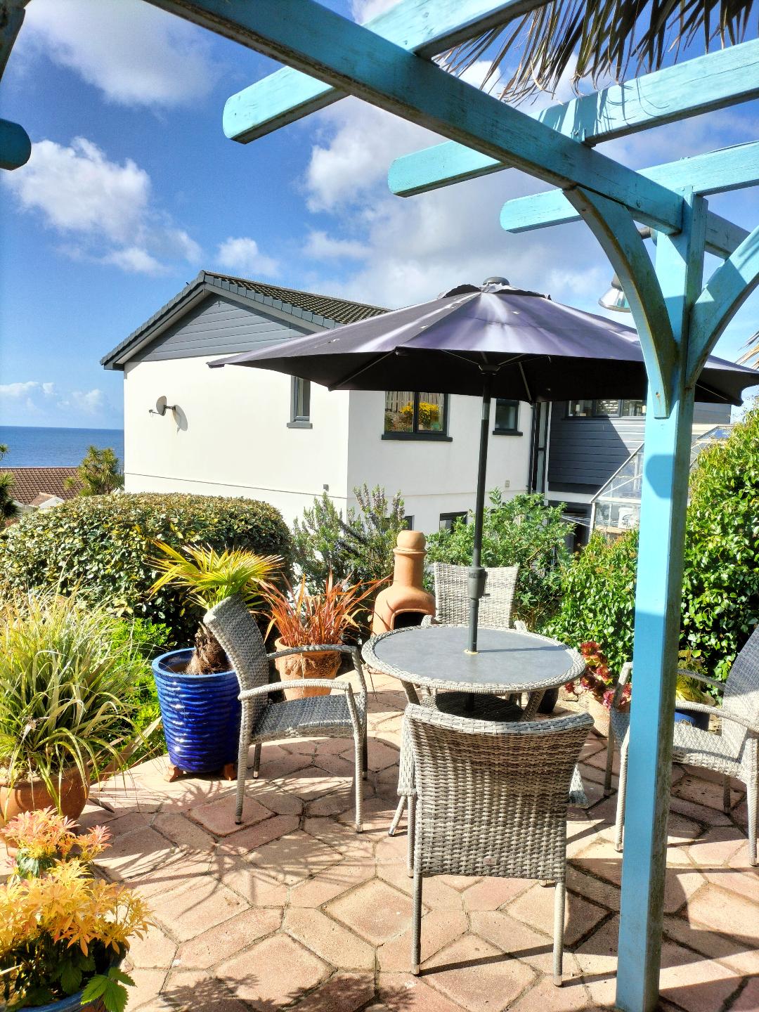Este alojamiento independiente se encuentra en la parte trasera de la casa del propietario. Los visitantes usan la cochera y caminan por un sendero inclinado con media docena de escalones hasta un solárium para su uso exclusivo. El alojamiento consta de un pequeño porche de entrada, sala de estar con suelo de baldosas de terracota, cocina bien equipada, comedor informal, baño de azulejos W.C. con lavabo y un pequeño dormitorio doble. El patio con su pérgola tiene una barbacoa incorporada y una chimenea que lo hace ideal para comer al aire libre.