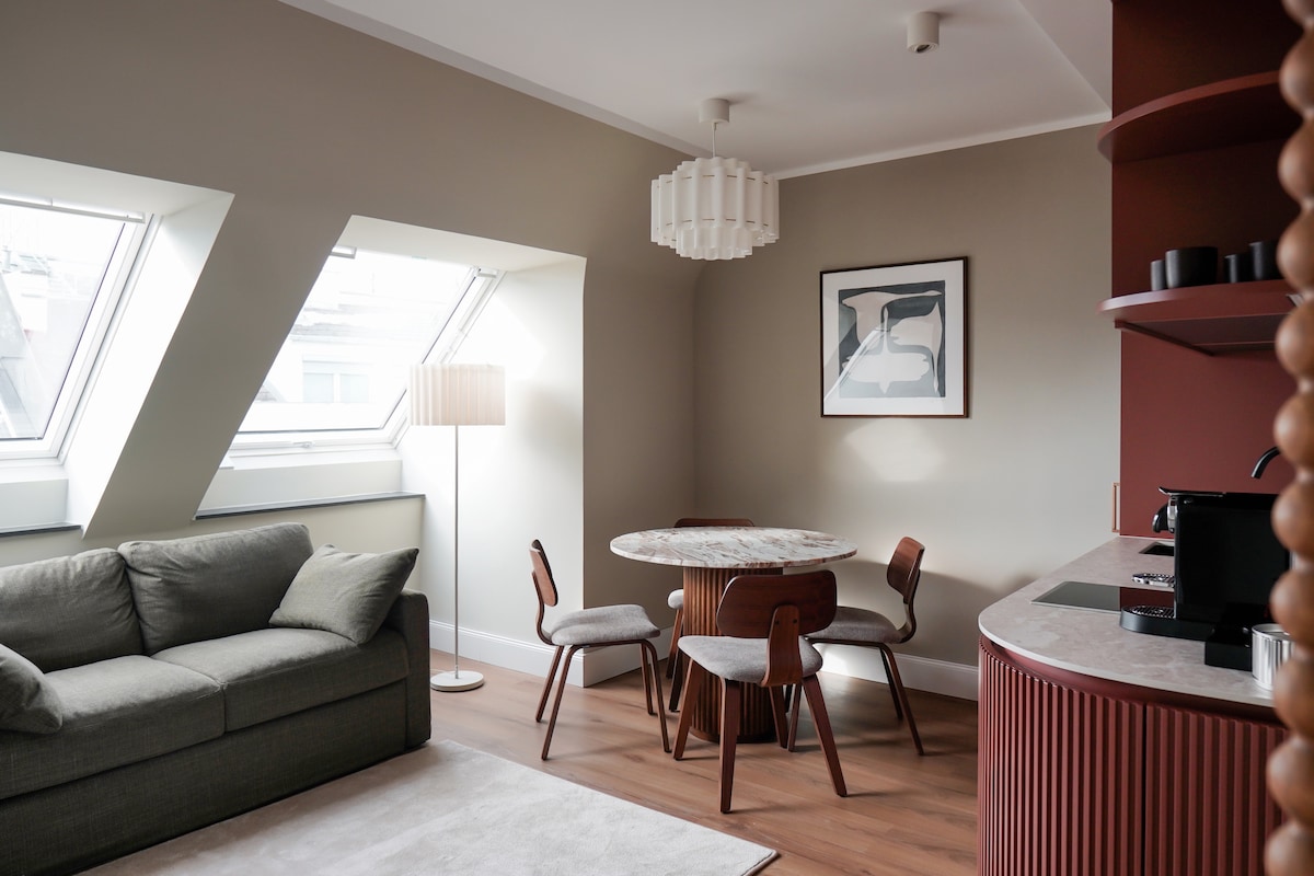 Dos apartamentos recién amueblados e interconectados, de 130 m2, en el corazón del centro de la ciudad, frente a la Academia de Bellas Artes/Semper Depot, a pocos minutos a pie de Mariahilfer Strasse, Secesión, Naschmarkt, TU y la Ópera Estatal. Ubicados en dos plantas, los apartamentos pueden alojar hasta 8 personas cómodamente. Cada apartamento viene con su propia personalidad única; uno vibrante y elevado y el otro con la elegancia relajada de una escapada íntima en medio de la bulliciosa vida del centro de la ciudad vienesa.