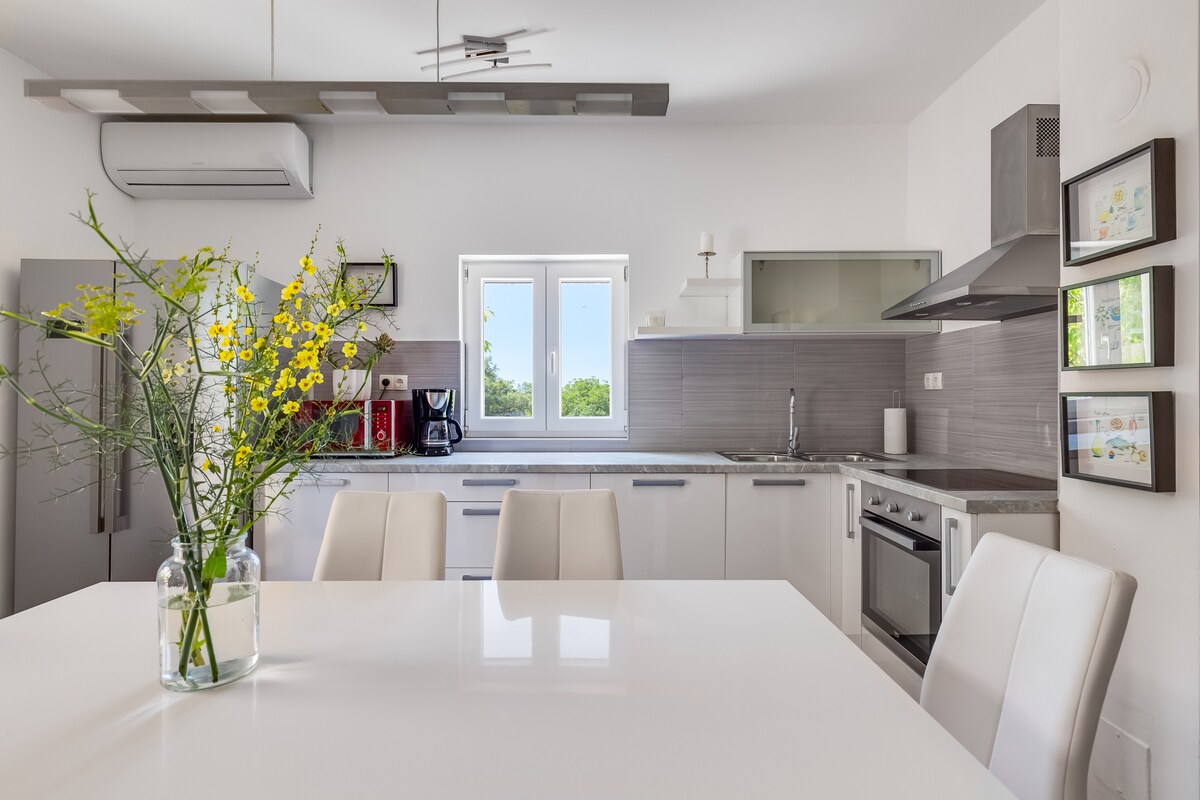 Villa Coleum - family retreat with pool and hot tub jacuzzi. Beautifully decorated, brand new villa - consists of two separated units which are both fully equipped. First floor (6 person) has 3 bedrooms, 2 bathrooms, beautiful dining area and living room. Second floor (2+2) has bedroom, bathroom and sofa. Both units have A/C, beautiful kitchen with all appliances, Wi-Fi, Netflix. Guests also have 5 free parking places outside the yard walls, 2 free parking places inside the walls and large BBQ.
