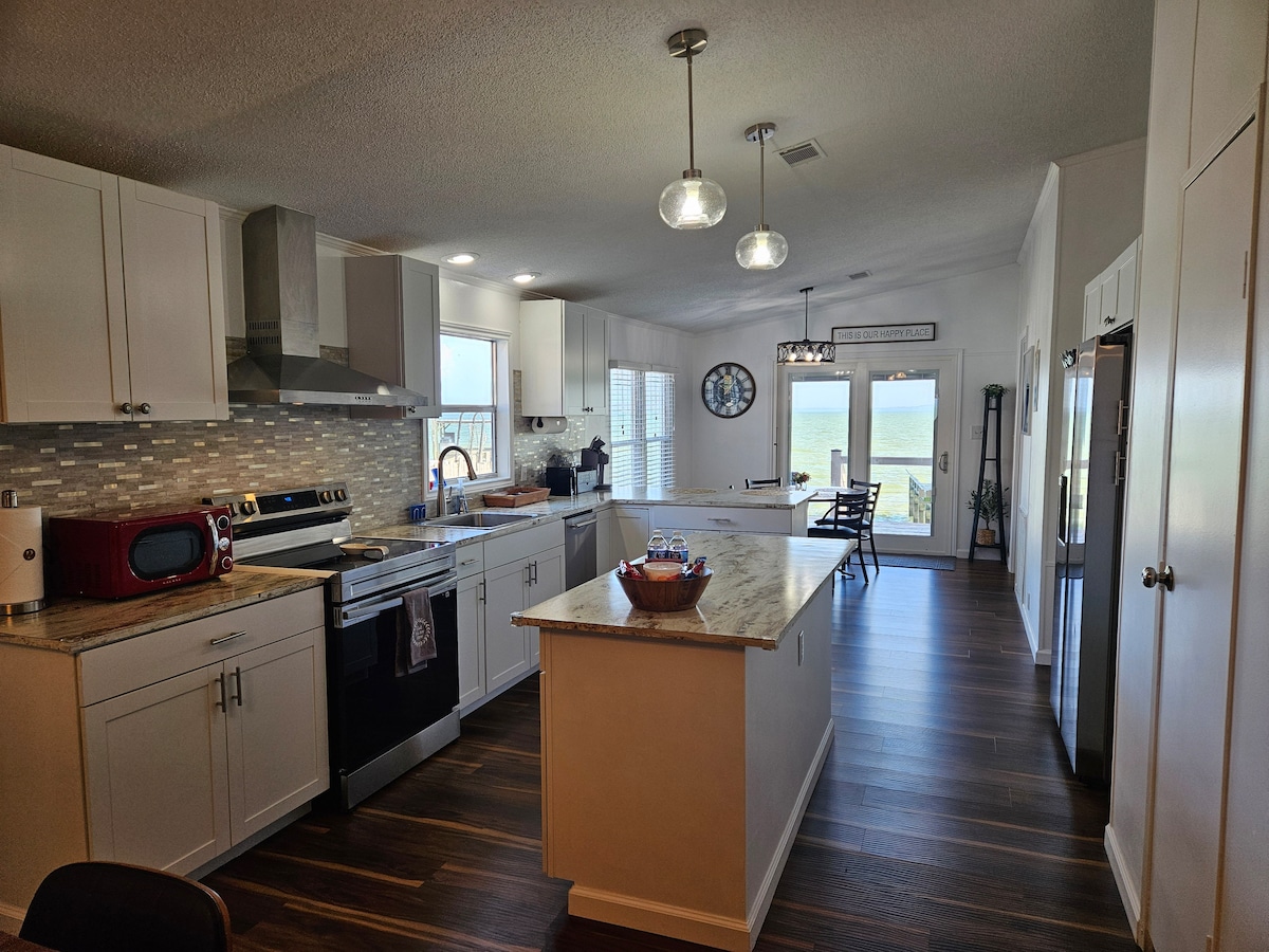 Disfruta de la paz y el zen en nuestra casa frente al lago de 2 dormitorios y 1 baño totalmente renovada. Con acceso directo al lago, cobertizo para botes privado y un enorme patio. ¡Tendrás la propiedad para ti solo para relajarte y disfrutar del lago! La casa de 950 pies cuadrados cuenta con 2 camas tamaño king, 2 sofás cama, cocina totalmente surtida, lavadora/secadora y un diseño elegante y tranquilo. ¡Es el lugar perfecto para desayunar en el patio, ver la puesta de sol sobre el lago, pescar y disfrutar de una bebida y s'mores en la chimenea por la noche!