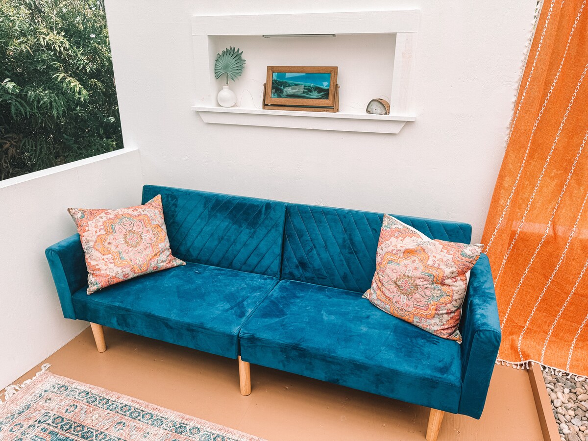 ¡Disfruta de esta forma única y económica de alojarte en la costa norte de Oahu! Nuestra tienda de campaña está enclavada entre una exuberante vegetación con unas vistas impresionantes de la cordillera Ko'olau. ¡Experimenta la belleza de la naturaleza sin sacrificar la comodidad! Nuestra tienda de campaña cuenta con 2 acogedoras camas tamaño queen, lo que garantiza una noche de sueño reparador. Estarás a menos de media milla de la playa más cercana y a una milla del centro comercial más cercano. Baños compartidos y cocina pequeña al aire libre con microondas, freidora de aire, agua potable y platos.
