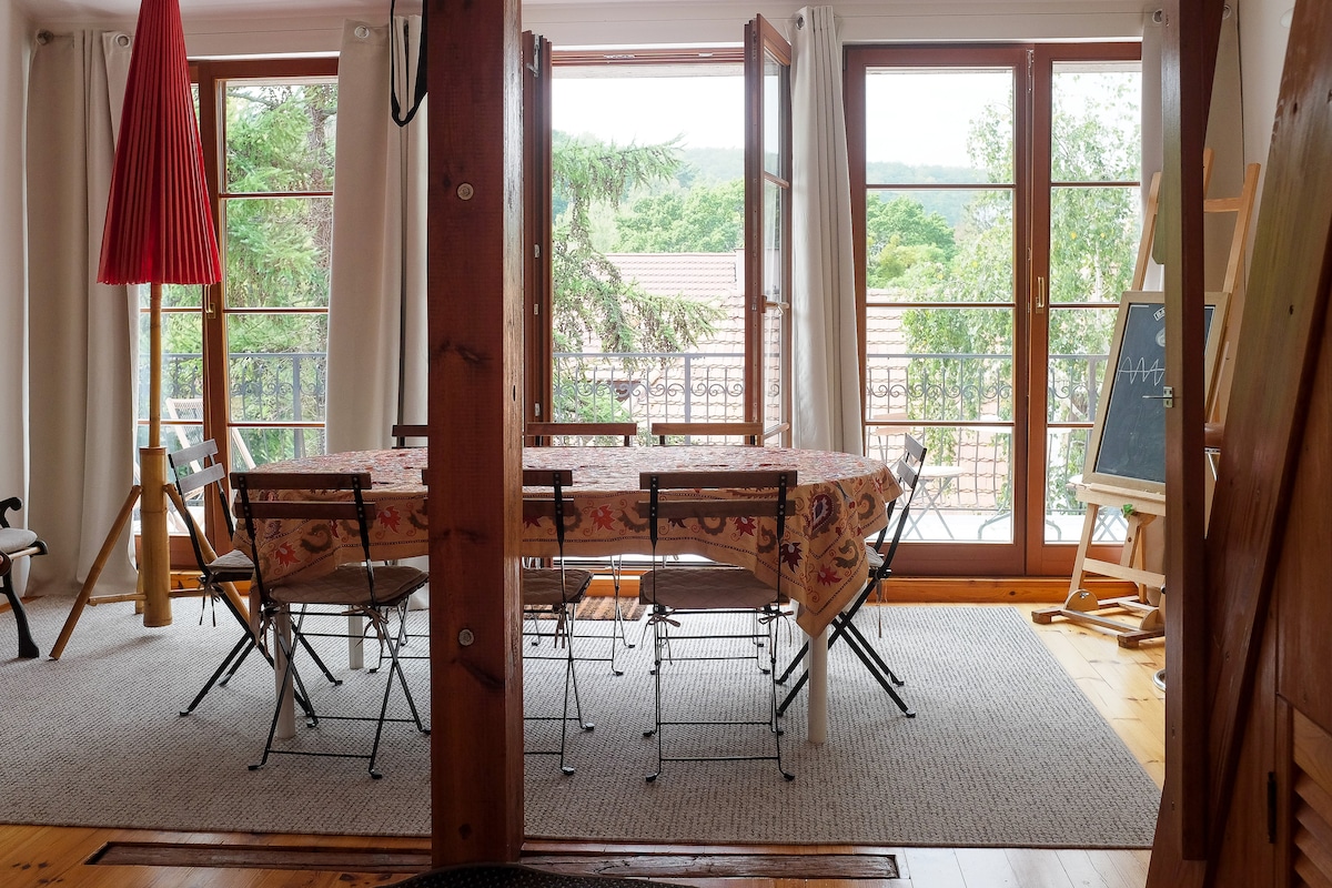Un departamento único con chimenea en el ático. Creamos este lugar solo para nosotros mismos, originalmente con pinturas, libros, una colección de cactus y cerámica hecha a mano. Nos encargamos de la comodidad: 2 sillones y un sofá, una chimenea y muchas almohadas. También hay una cocina equipada, una mesa con 4 sillas, un escritorio de trabajo e internet de fibra óptica rápida. Cerca hay una pizzería, un bar, tiendas, a 5 minutos a pie de la estación de Gdańsk Oliwa.