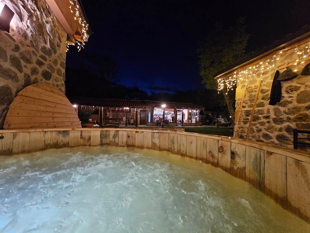 Discover the perfect romantic escape in our Honeymoon Apartment, with a private balcony overlooking nature and a charming village river. As our most secluded space, it offers maximum privacy. Guests can also enjoy a Russian bath, sauna, and open-air hot tub. Our family prepares traditional cuisine with locally sourced, homemade ingredients, giving you a taste of authentic regional flavors. Ideal for a peaceful, intimate getaway surrounded by nature's beauty.