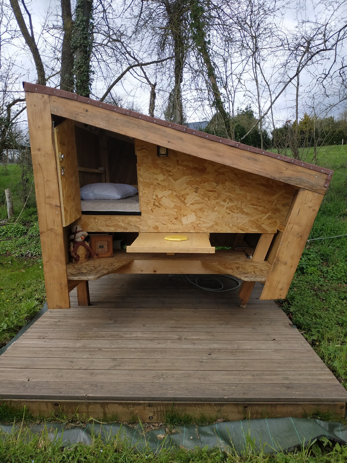 L'Abri'cyclette est un petit nid douillet, tout en bois, doté d'une bonne literie (couette et duvet non fournis) pour se reposer au cœur de la Suisse Normande. Vous y passerez une nuit comme à la belle étoile, mais à l'abri ! A partir de 2026, des toilettes sèches seront installées sur le terrain.