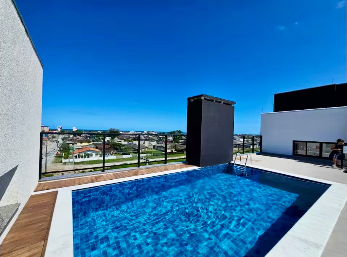 Imóvel alto padrão no Balneário Riviera A apenas 100 m da Praia Brava, esta residência foi planejada para oferecer conforto e sofisticação a famílias e grupos de amigos que buscam viver dias especiais à beira-mar Piscina privativa aquecida, cozinha equipada, área gourmet interna com churrasqueira. São 3 suítes, 1 quarto, 1 banheiro, sala de jantar e estar integradas com Smart TV 65" Ideal para 8 hóspedes, mas acomoda até 12, com roupas de cama incluídas Garagem para até 4 veículos Pet friendly