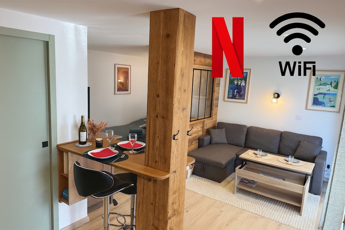 Bonito apartamento de 60 m² reformado con piedras a la vista y chimeneas del siglo XVI. Amistoso, cálido y contemporáneo a la vez con todas las comodidades modernas. Encontrará: cocina equipada abierta a un salón cómodo y espacioso con TV y Wifi. Dormitorio separado con 1 cama de 160, baño con toalla seca. Entrada, estacionamiento y terraza privados. Madera incluida.