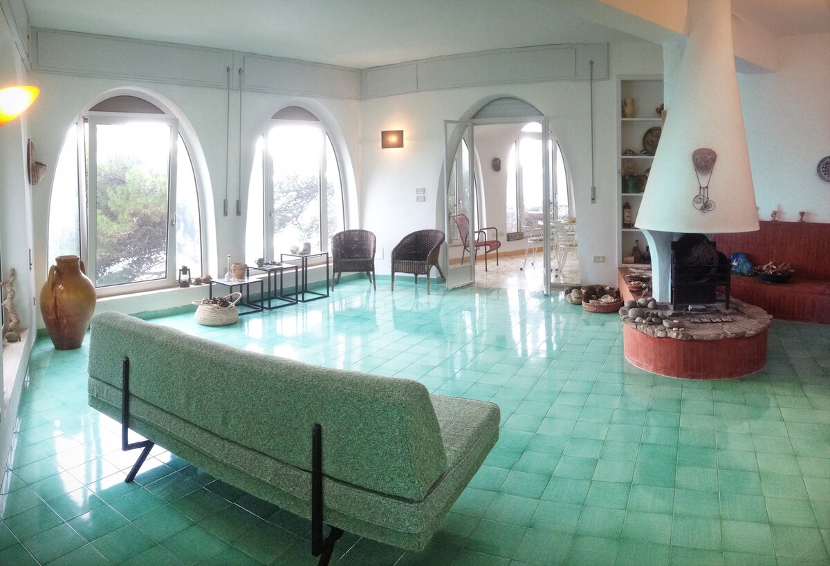 Conca dei Marini es un encantador pueblo pesquero muy tranquilo, la villa morisca está encaramada sobre el golfo con una increíble vista sobre el mar en un jardín en terraza rodeado de flor de buganvillas. Está perfectamente situado para disfrutar de todas las comodidades y placeres de la costa sin comprometer tu paz y serenidad. El piso de la casa está cubierto con azulejos de cerámica hechos a mano y el interior es de techo con forma de cúpula blanca.
