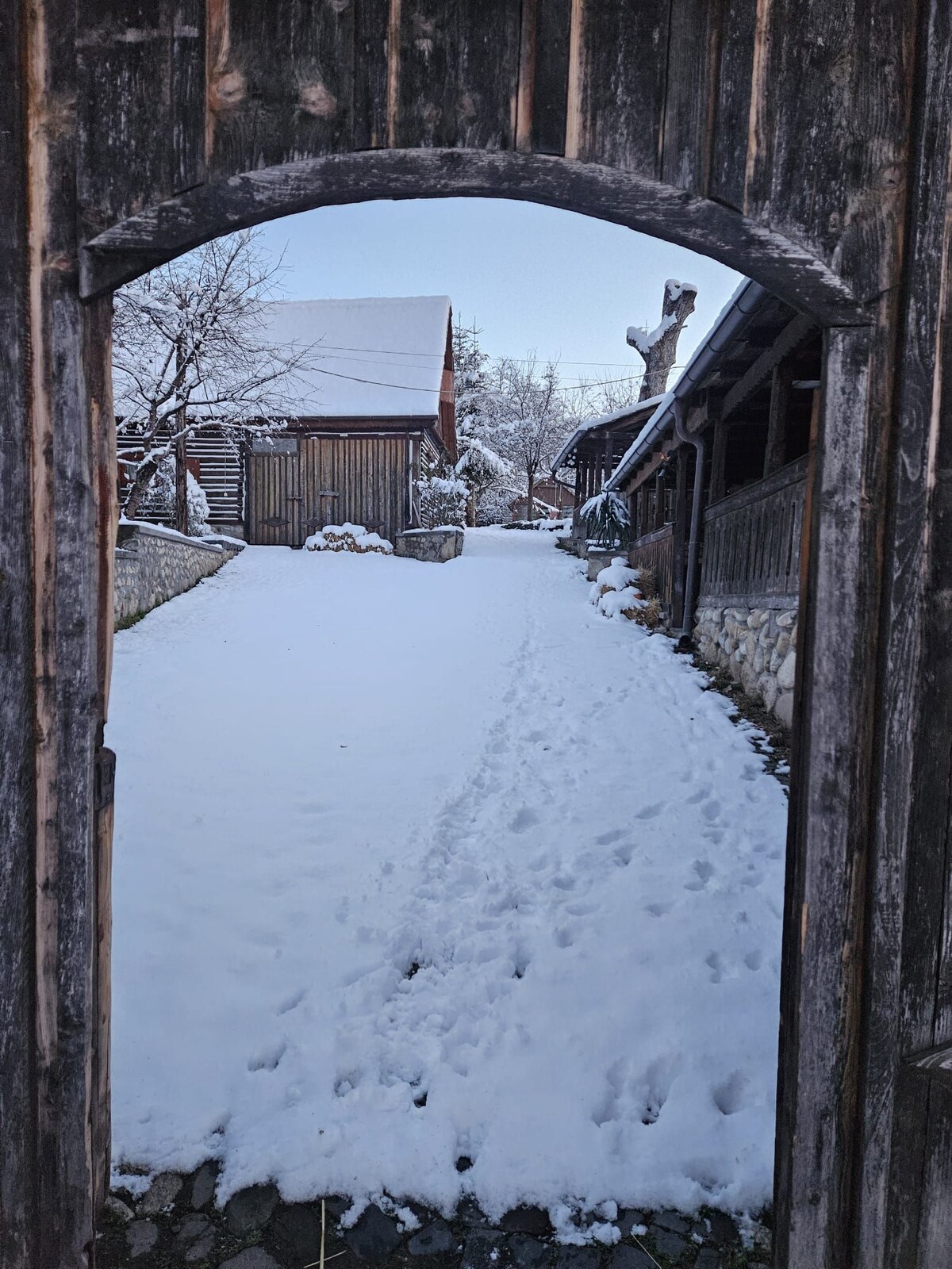 Welcome to our cozy wooden A-frame cabin, nestled in beautiful mountains. Enjoy the peace of nature with a river and lush forests a short walk away, plus a large children's playground nearby. Stay close to the lively village while savoring the quiet countryside, with friendly horses, cows, and sheep passing by. Your perfect getaway awaits!