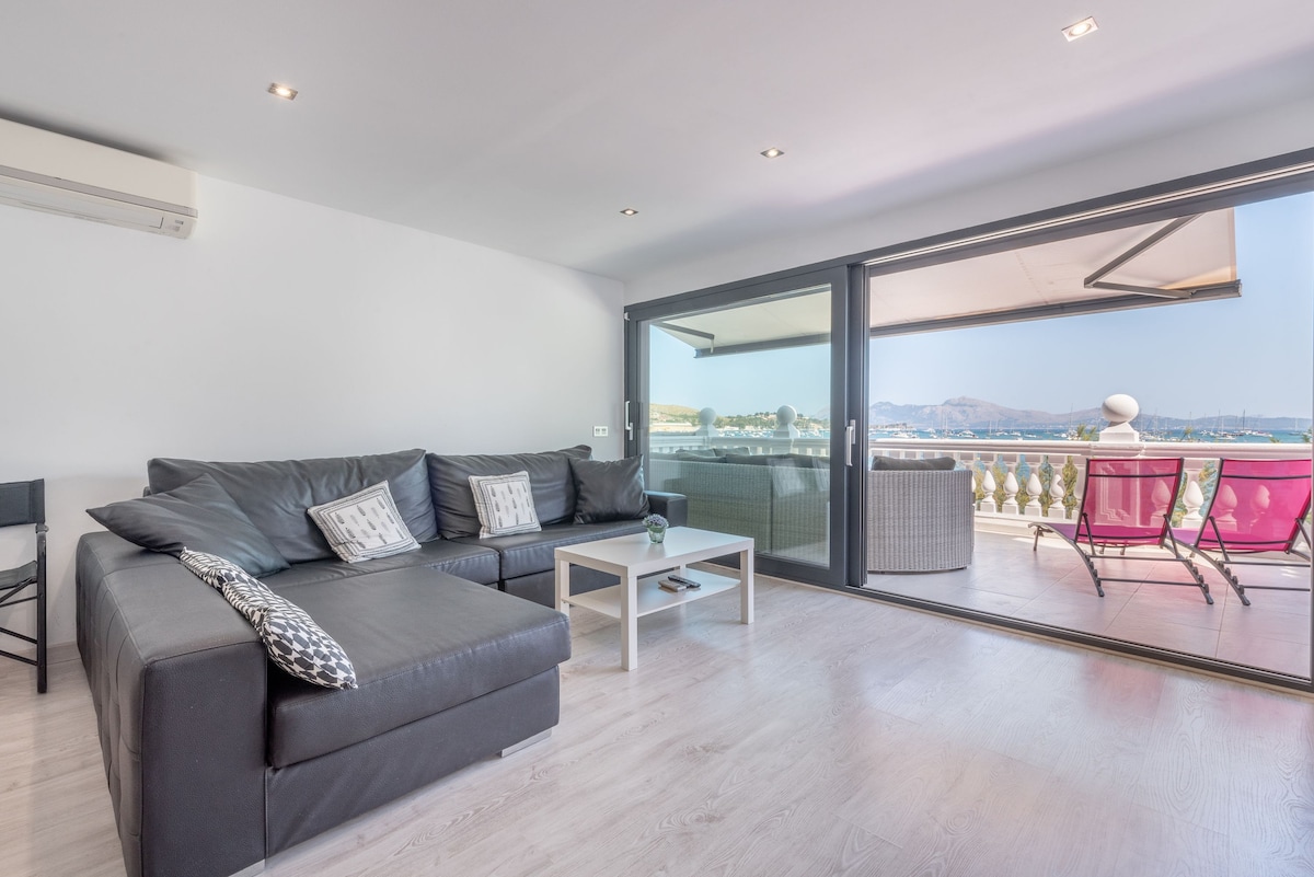 Apartamento de 3 dormitorios para 6 personas en la bahía de Puerto Pollensa: Hermoso apartamento en el primer piso con vistas al mar, situado frente a la playa de arena, a pocos minutos caminando desde el centro de la ciudad.