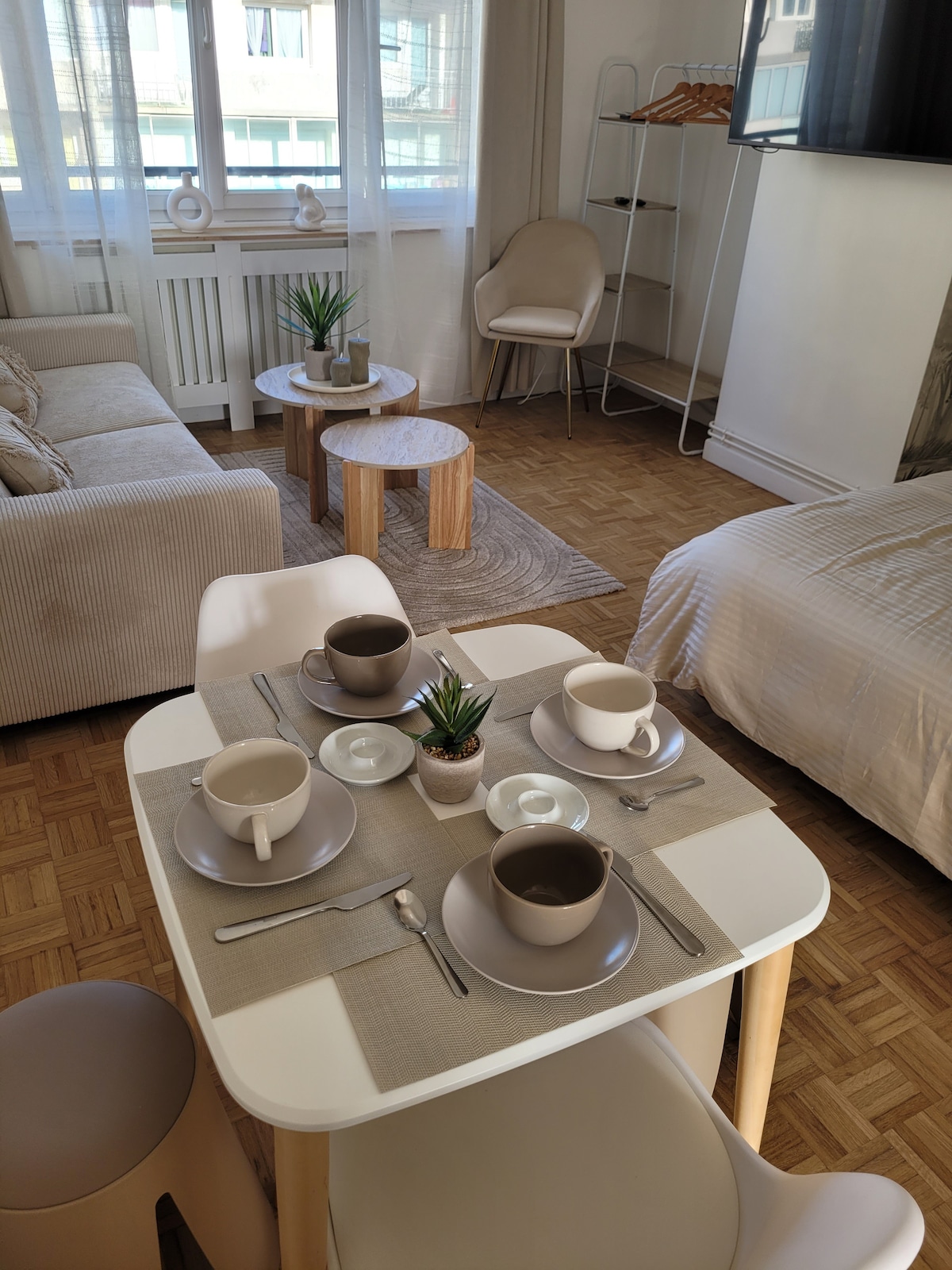 Bienvenue au Studio Le Plumard Bleu. Idéal pour les travailleurs ou les couples, parking rue gratuit, à 3min de l'autoroute, 10min à pied de la gare, bus gratuit à 50m vous emmène à la plage (C3). Quartier calme, parfait pour télétravailler (wifi). Studio lumineux (avec volets) situé dans un bâtiment de la reconstruction entièrement rénové (thermique et fonctionnel) et classé 2 étoiles. Il se distingue par sa conception alliant espaces sur mesures et une décoration élégante et pétillante.