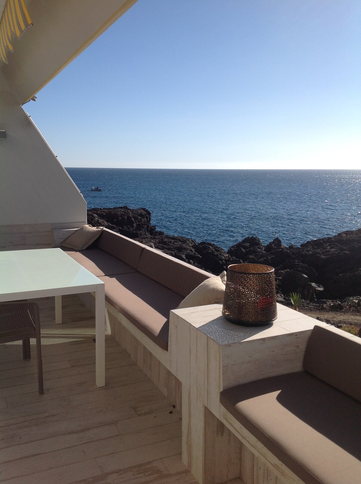 “Bella-Vista Suite" bien merece su nombre: ubicado en la ladera de un impresionante acantilado, tendrá la sensación de estar flotando sobre el océano a 220 metros de altura. Sin duda, podrá disfrutar de las mejores vistas infinitas de la costa norte de Tenerife, que arrancan con el majestuoso Océano Atlántico bajo sus pies, en la cala natural que alberga al complejo, y se extienden hacia el horizonte, culminando en el magnífico Teide sobre el valle.
