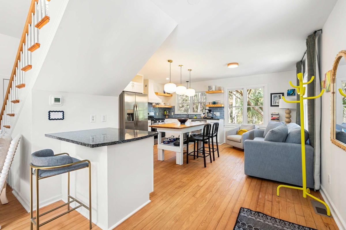UPDATED LUXURY, FASTIDIOUS CLEANLINESS in historic OldTown Bluffton’s coziest carriage house. OldTown’s vibe is just plain fun. Stoll 2 blocks to super restaurants, night life, art galleries, boutiques, antebellum homes & lush waterfront parks on the idyllic May River. New in 2018 w/ quartz counters, private bedroom w/ plush king-size bed, upscale bath w/ soaking tub, bright living/dining room, full kitchen & romantic rocking-chair porch up in moss-draped oaks. Read our Reviews—guests love it!