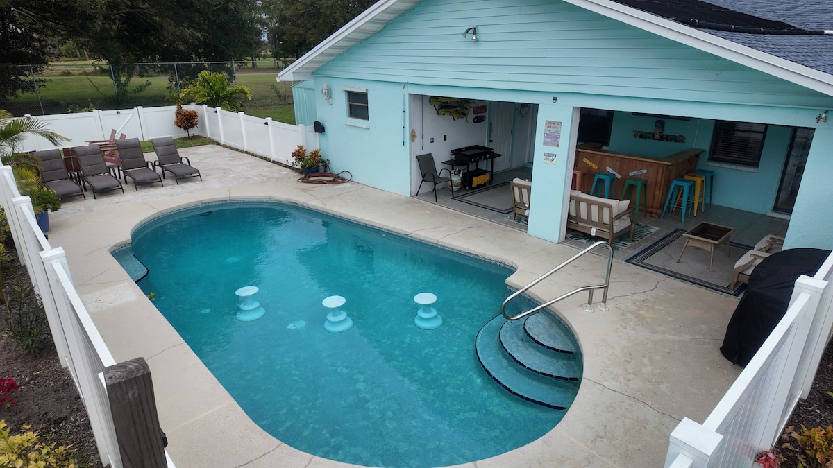 Breezy 4BR en campo de golf + piscina climatizada + Tiki Bar