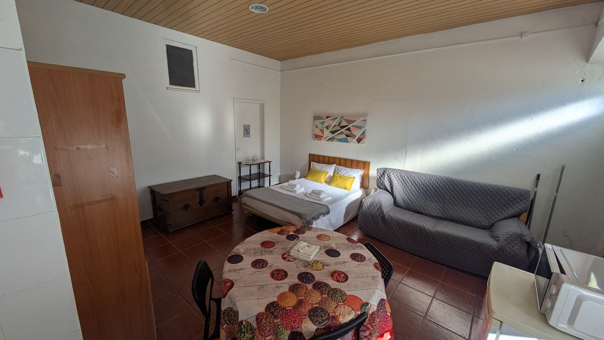 Muralha Este apartamento está en la planta baja de la casa (R/C) y consta de: una gran sala de estar, con un sofá cama nido donde será fácil instalar a 2 niños, 1 dormitorio, un baño, una cocina totalmente equipada, con comedor y una pequeña y acogedora terraza con vistas a un hermoso paisaje.
