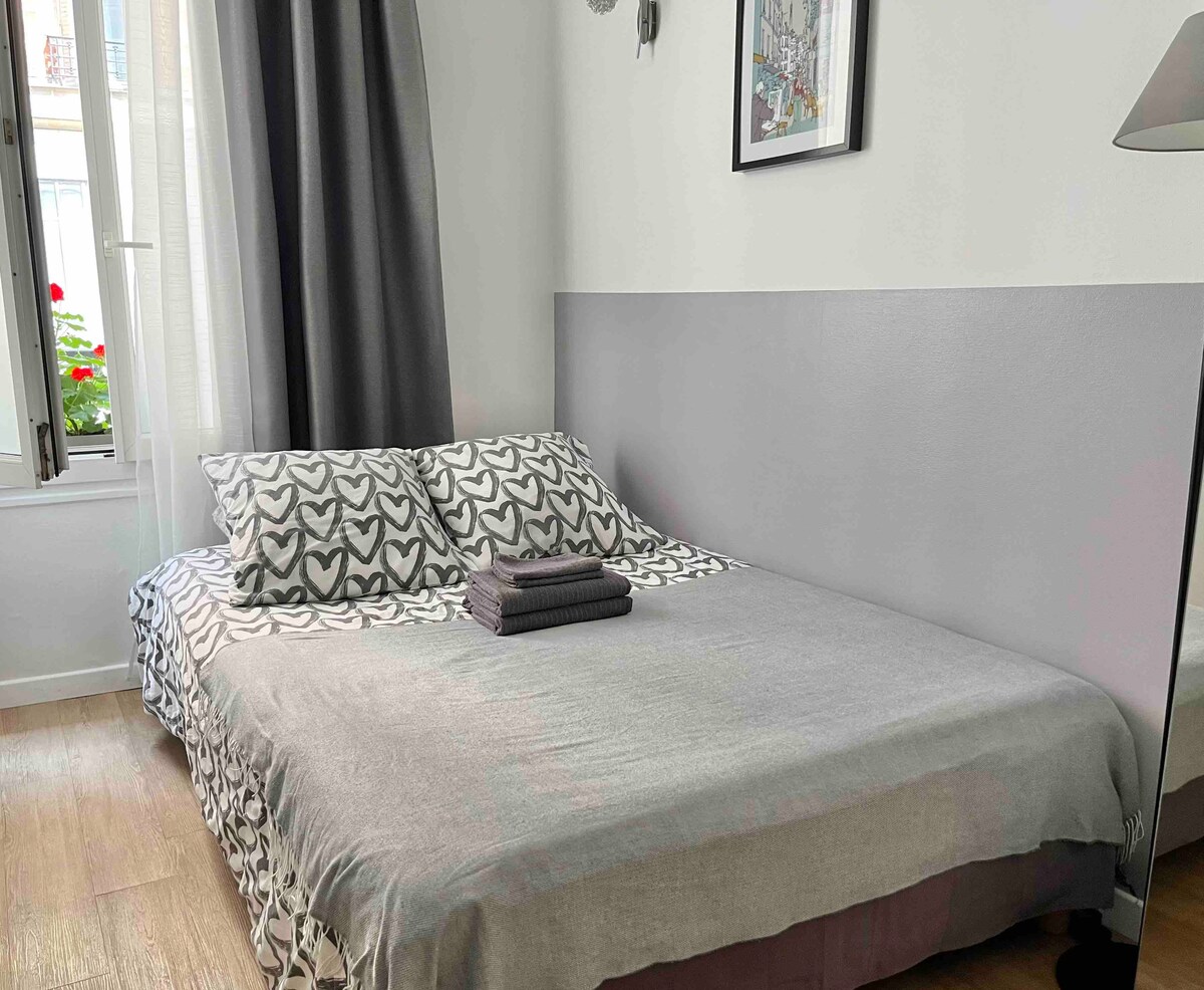 Apartamento encantador y espacioso de un dormitorio, para una pareja y hasta 4 huéspedes; los 2 sofás se pueden convertir en 2 camas individuales (80 x 180 cm), ideales para niños. El departamento está en una calle tranquila y está muy seguro con un encargado del edificio y videovigilancia. Mientras disfrutas de la calma de la calle, estarás cerca de lugares agradables para comer, un supermercado a solo 3 minutos a pie, un hermoso parque y muchas tiendas cerca. Encontrarás formas fáciles de llegar a todos los lugares de interés parisino.