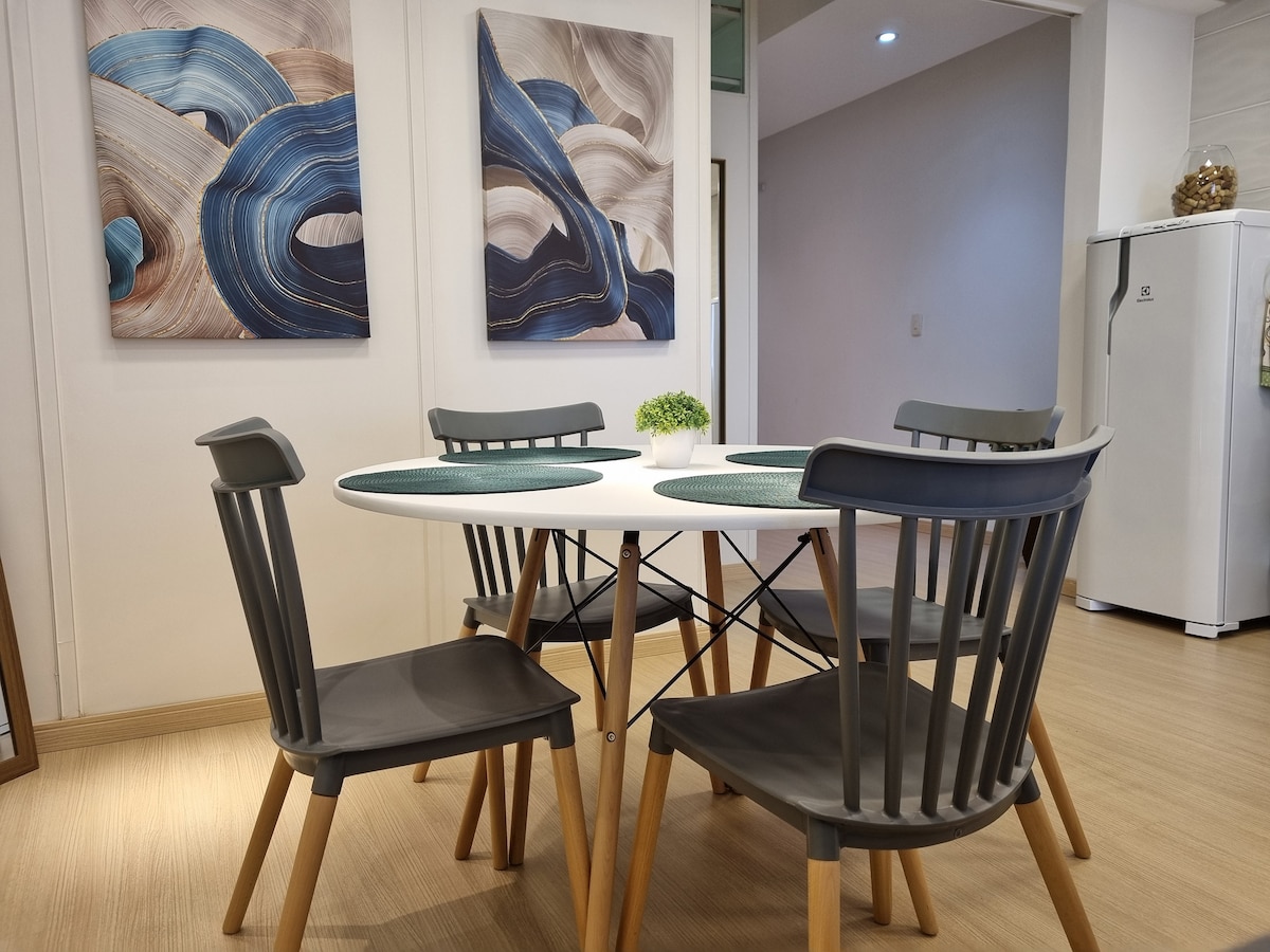 Ideal para estancias cortas o largas, nuestro estudio ofrece un entorno integrado que combina cocina, sala de estar y dormitorio con practicidad y comodidad. Tiene una cama queen y un sofá cama. El espacio cuenta con aire acondicionado, TV inteligente, espejo de cuerpo entero, mesa con dos sillas y una cocina completa para tus comidas diarias. El baño es privado y tiene una ducha cómoda y un secador de pelo. 2 estacionamientos al lado del edificio, a menos de 50 metros. Diariamente entre 35 y 60 reales.