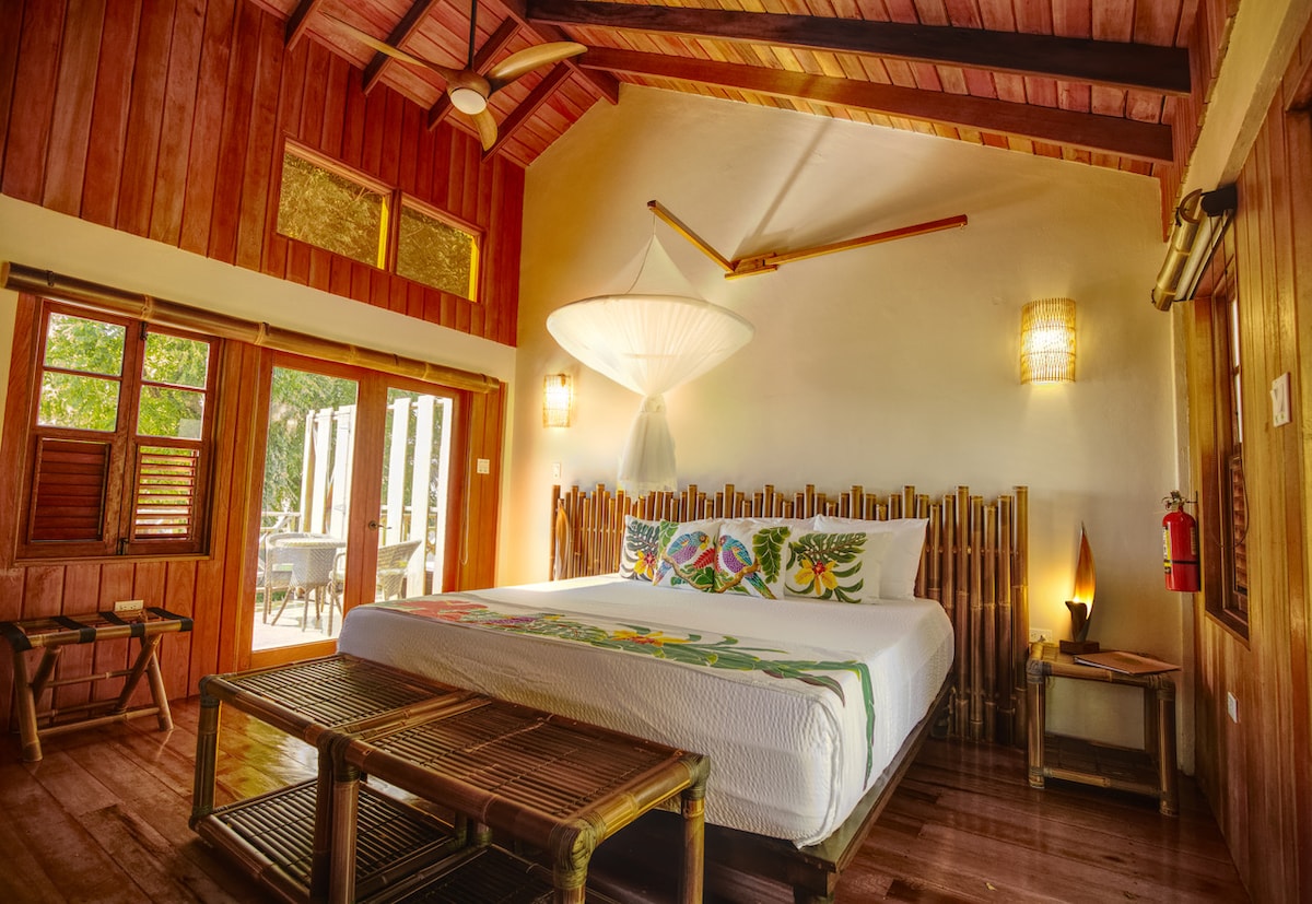 Casa de campo junto al río en una plantación ecológica de 20 acres. Se trata de un lujo descalzo donde el lujo proviene del espacio, el río y la plantación. Aquí no hay nada que mostrar. Simplemente disfruta de estar en la naturaleza con huéspedes de otras nacionalidades alojándose en las otras 6 casas de campo y villas dentro de la plantación. Elige socializar en Riverside Café o disfruta de la privacidad de tu casa de campo y cocina . Todo es tu elección.