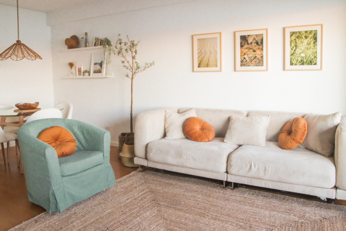 Ven a relajarte con toda la familia en el apartamento recién reformado con vistas al mar. Este apartamento de la 1ª planta está situado en el tranquilo barrio de «Pera de Baixo» y es accesible a través de una entrada independiente. Disfruta de las bonitas playas de la Costa da Caparica a 5 minutos y del centro de Lisboa a 20 minutos. El apartamento está totalmente equipado, tiene wifi rápido y una cuenta de Netflix activa. Cuenta con 2 camas dobles que se pueden separar en 2 camas individuales, así como una cuna para el bebé.