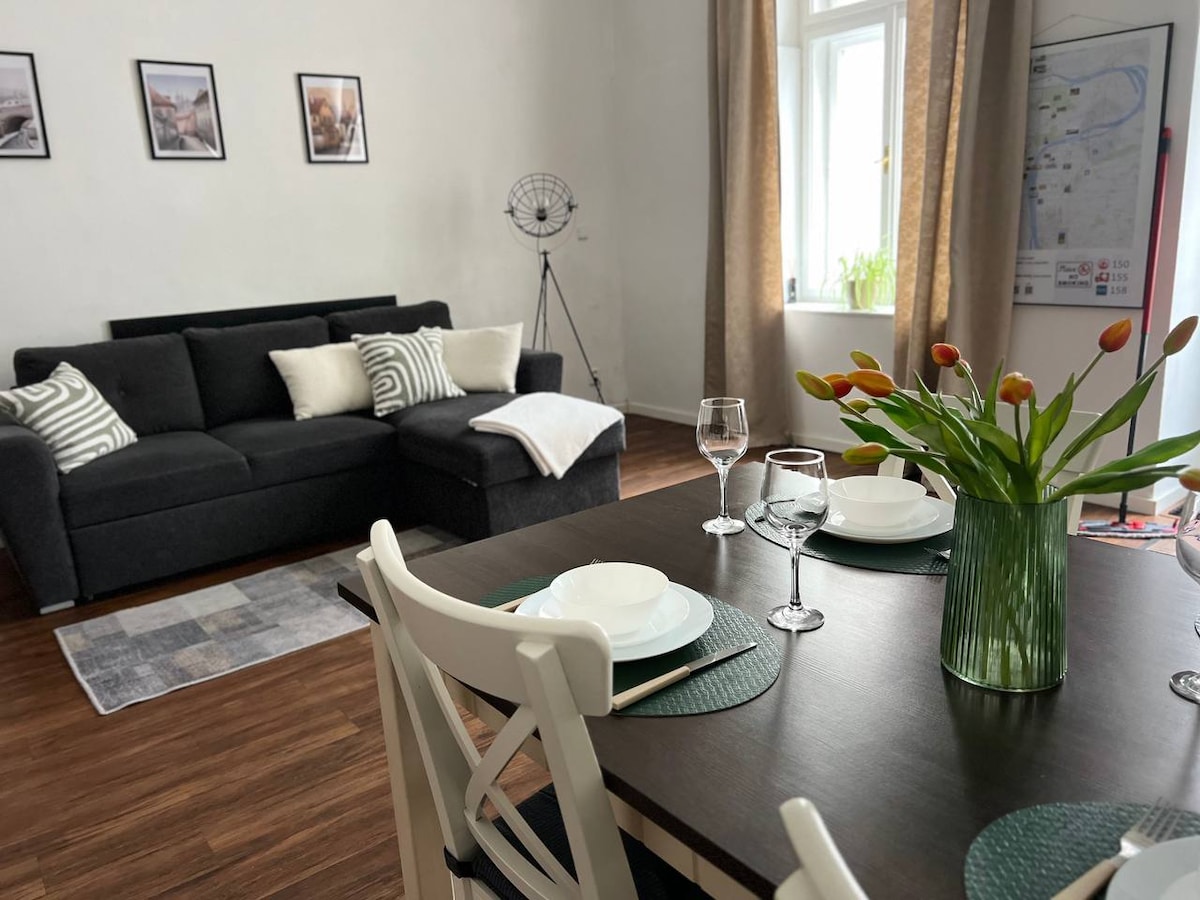 Disfruta de tu estancia en mi hermosa casa Jugent Stil construida en la década de 1890, pero recientemente renovada con todas las comodidades modernas que uno podría desear, incluido el aire acondicionado incorporado en todas las habitaciones. Apartamento de dos dormitorios bellamente decorado con techos altos históricos decorados con molduras de estuco ornamentadas, muebles de mediados de siglo y modernos en todas partes, baño con bañera grande y aseo separado. El lugar ideal para sentirse como en casa mientras estás en Praga, ya sea para un viaje de fin de semana, un viaje de negocios o estancias más largas.