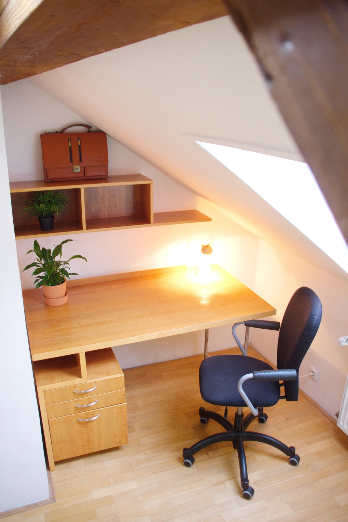 Snuggle up for a romantic night under a vaulted ceiling. This loft has been tastefully decorated with statement wallpaper in the bedroom area and boasts striking furniture that has been carefully selected to highlight the space. The bedroom is accessible by stairs. It has comfortable King size bed with quality mattress, chair and wardrobe. The living room is combined with kitchen and has large dining table. We will do our utmost for you to be delighted!