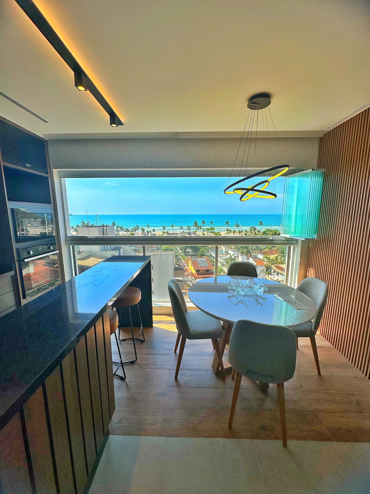 Departamento de lujo a solo 200 metros de la playa con vistas panorámicas al mar. • Espacios abiertos: living integrado, cocina totalmente equipada y lavadero • Dormitorio: 1 suite principal (cama doble) + 1 dormitorio (cama doble) y 1 baño compartido • Hogar inteligente: iluminación, aire acondicionado y cortinas a través de Alexa • Terraza: pileta infinita con vistas panorámicas de Praia da Enseada • Conserje las 24 horas • 1 plaza de estacionamiento.