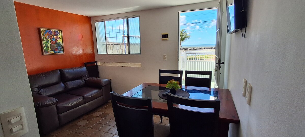 Piso frente al mar en la playa de Carne de Vaca. Todo amueblado y equipado. 1 dormitorio, suite, sala de estar, cocina completa, área de ocio (compartida), aire acondicionado, wifi, garaje y cámaras de seguridad. Ubicación privilegiada cerca de la plaza, panadería, tiendas, farmacia, centro de salud, bares y lugares de interés. Playa de naturaleza impresionante y tranquila. Ideal para vacaciones, temporadas, paseos, descanso o incluso trabajo. Lugar imperdible para esos momentos de tranquilidad entre amigos y familiares.