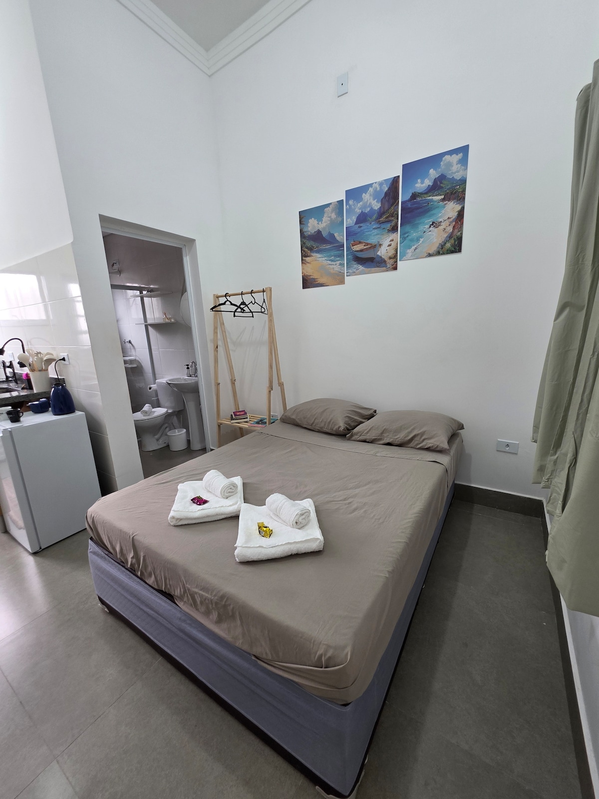 Decorada con cariño y diseñada para ofrecer comodidad tanto en estadías cortas como largas. Ideal para parejas, personas que viajan solas por placer o trabajo, y también para familias con niños. El espacio puede alojar cómodamente hasta 4 personas. Situado frente a la playa, en una calle tranquila y apacible, tendrás todo lo que necesitas a pocos pasos: farmacia, panadería, mercados y mucho más. Vení a vivir días especiales en Caraguatatuba. ¡Te estaré esperando!