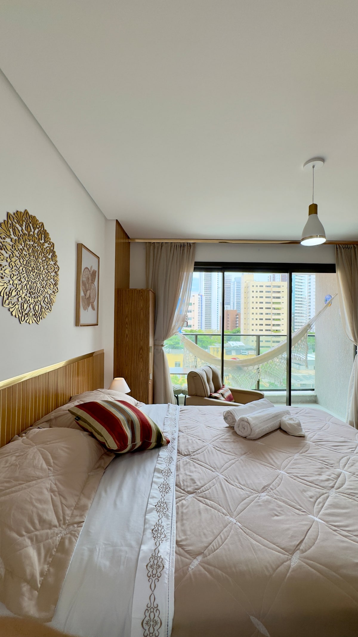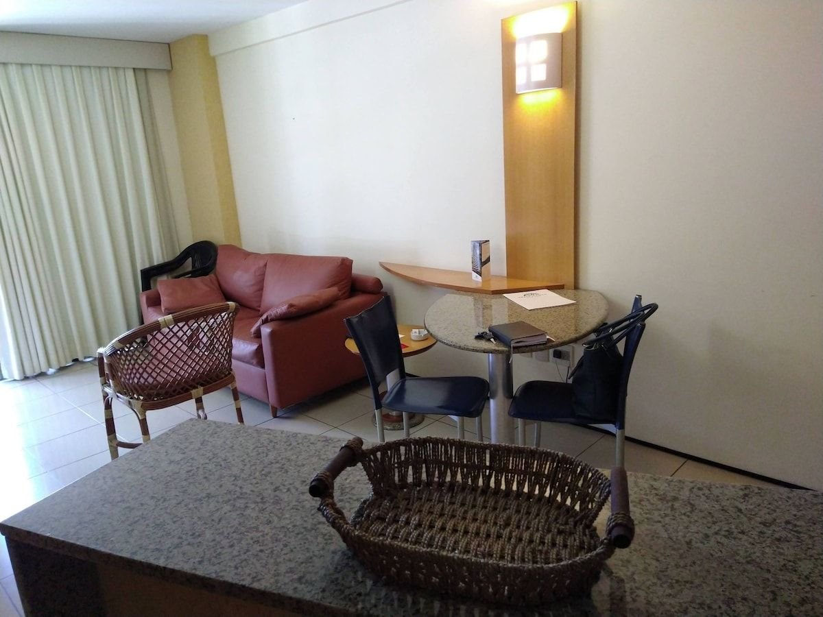Nuestro apartamento ha sido completamente renovado, con todo el gusto nuevo y de buena calidad, con cama impecable y ropa de baño; cocina completa como todos los accesorios , lavadora, plancha, secadora de nevera y microondas . 01 habitación - suite , cama tamaño king - sofá cama, sala de estar y dos televisores por cable, aire acondicionado ( hasta 4 personas), con acceso a áreas comunes y desayuno opcional ( recogido en el sitio). Seguridad 24/7 y excelente ubicación.