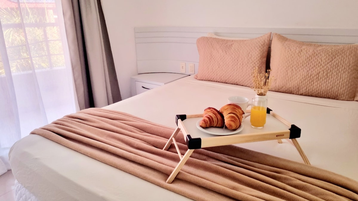 Apartamento de 50 m² con 1 dormitorio, sala de estar, cocina y balcón, frente al mar y la famosa playa de Ponta Negra. Es un piso extremadamente cómodo y acogedor, equipado con aire acondicionado, Smartv de 50 pulgadas con acceso a Youtube y Netflix, con TV por cable e internet, además de tener una hermosa vista del océano y la colina de Careca. La cocina cuenta con todos los utensilios de vajilla y cubiertos, nevera inoxidable, cocina, microondas, cafetera y mesa de comedor.
