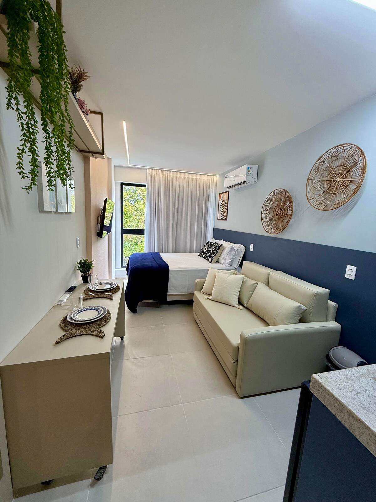 Descubrí un departamento con estilo en la nueva costa de Tamandaré en Açores Tamandaré Flats. Nuestro moderno y acogedor estudio ha sido pensado en detalle para garantizar tu comodidad. Con una vista privilegiada del mar, tendrás los pies en la arena, frente a las piscinas naturales y cerca de la playa de Carneiros. Ideal para parejas, familias pequeñas o grupos de hasta 4 personas que buscan relajarse y disfrutar de lo mejor de la costa de Pernambuco. ¡Ven a vivir esta experiencia!
