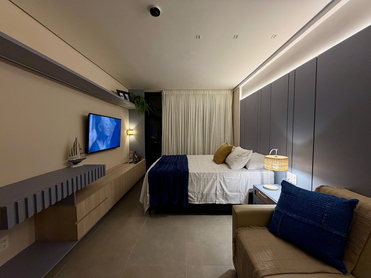 ¡Hola! Nuestro apartamento está ubicado en el Beach Class Muro Alto Resort, que está en primera línea de mar y cuenta con una de las piscinas más grandes de América con 3.200 m², 2 restaurantes, spa, tienda de comestibles, lavandería, etc. El Flat tiene 02 habitaciones y capacidad para 06 personas, 02 camas dobles más 01 sofá cama (doble), todas las habitaciones tienen aire acondicionado y televisores 4K con streaming gratuito, balcón, cocina equipada y mesa de comedor. Praia de Muro Alto es una de las más bellas de Brasil.