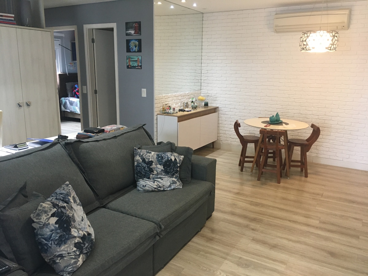 Apartamento nuevo, amueblado, aire acondicionado y TV en los dormitorios y en la sala de estar. Cuenta con cocina completa, barbacoa en el balcón, TV por cable e internet wi-fi, 1 plaza de aparcamiento, portería 24h. Situado a dos cuadras de la playa José Menino, entre los canales 1 y 2, cerca de panaderías, supermercados, centros comerciales (Parque Balneário y Miramar), bares, restaurantes y cines. Barrio seguro y tranquilo.
