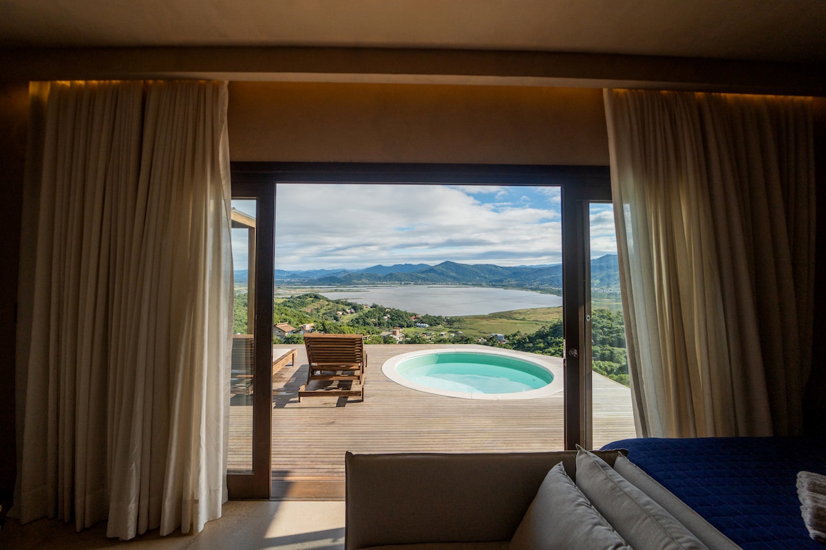 Relájese en este espacio tranquilo y elegante. El loft cuenta con una bañera de hidromasaje doble con calentador digital sobre una piedra natural que ha sido preservada, desde donde se puede contemplar una vista cinematográfica del mar, la Mata Atlántica y sus imponentes montañas del Parque Estadual da Serra do Taboleiro. También tiene una maravillosa terraza individual frente a la piscina y vista a Praia do Siriú, Vigia e Ilhote do Siriu. Chalesmontanhasemar