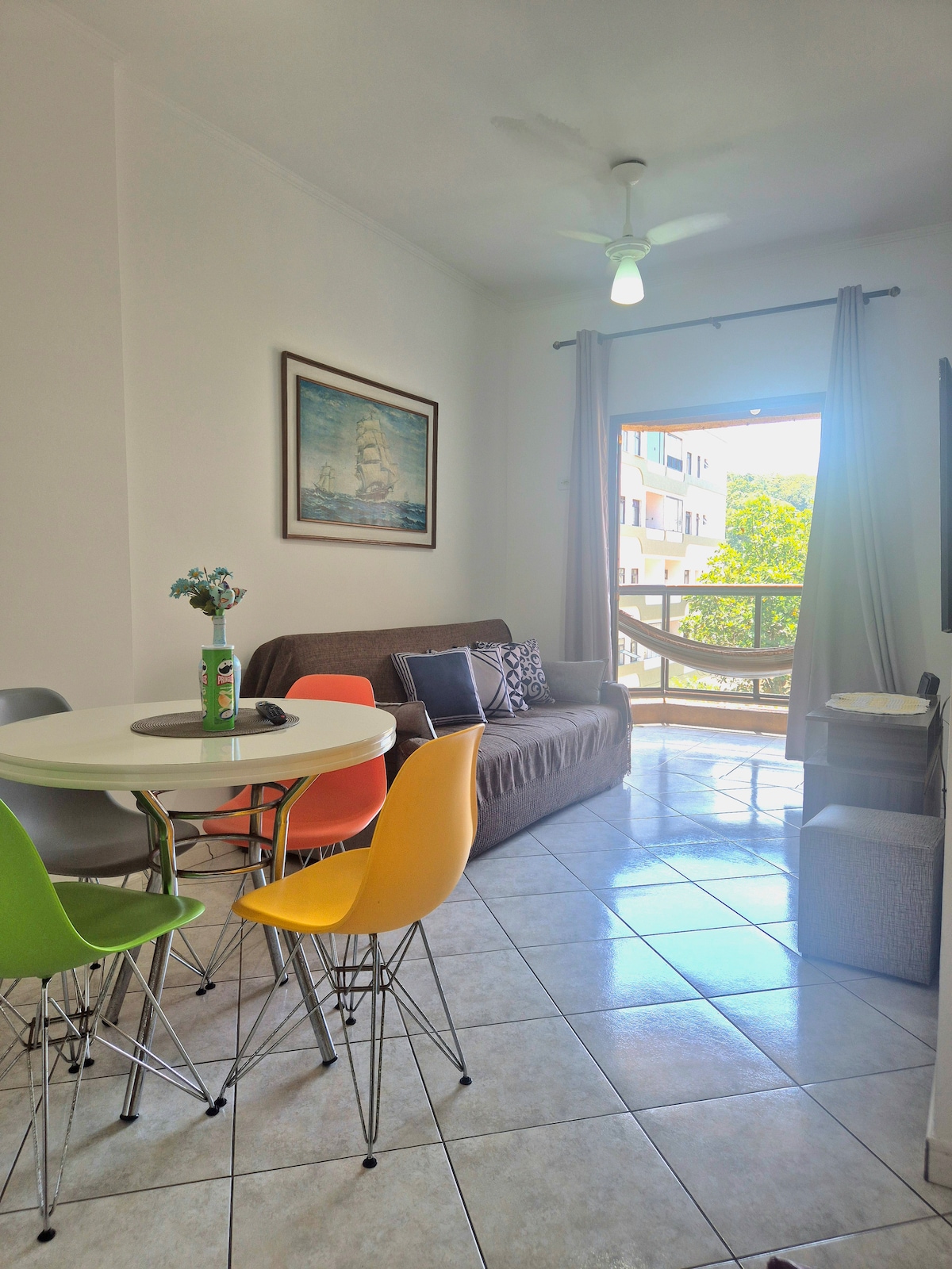 ¡Prepárate para la inolvidable vista panorámica de Praia do Tombo y Guaiúba al mismo tiempo! La Praia do Tombo es la playa récord; es la única playa del estado de São Paulo certificada 15 veces con la Bandera Azul. Sin duda, una de las más limpias y hermosas del mundo. La Praia do Guaiúba es rústica, tiene un mar tranquilo y casas de alto estándar en los alrededores, se encuentra entre hermosas montañas. Lo mejor de la estancia es la puesta de sol que se puede contemplar desde el balcón del apartamento.