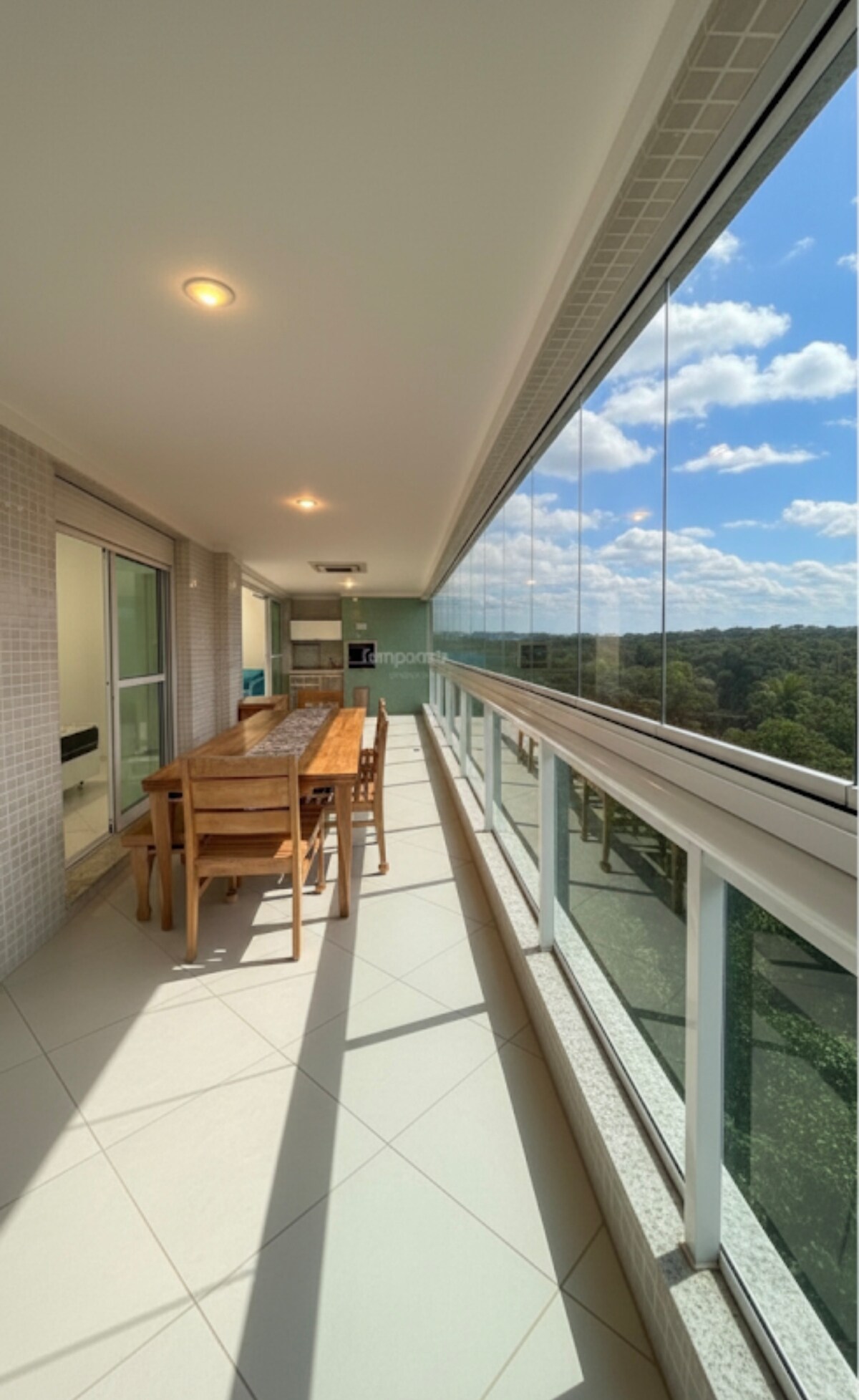 Departamento con dos dormitorios, sala de estar, cocina, baño, zona de lavandería, gran balcón, junto al mar, en uno de los condominios más valorados de la costa norte de São Paulo, a solo 150 km de Sao Paulo. Hay aire acondicionado; el balcón se puede cerrar, con vidrio retráctil. Hay un tratamiento ejemplar de agua y alcantarillado.