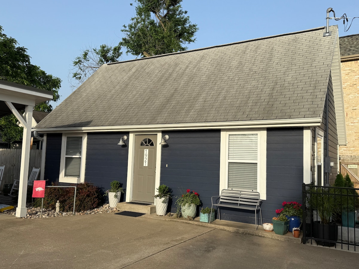 Suite con entrada privada en barrio tranquilo; dormitorio, baño, sala de estar y cocina; cama tamaño queen, el sofá se convierte en una cama completa; Entrada sin llave. capacidad para 2 personas cómodamente; Wifi gratuito AT&T Fiber-Internet 1000 TV con Directv en sala de estar y dormitorio; Lavadora y secadora Parking gratuito «Explora» cerca: * Centro histórico de Rogers - Frisco Park (0,3 millas) * Museo Crystal Bridges (7,8 millas) * Rutas ciclistas de NWA (más de 500 millas) * Walmart AMP (3,9 millas) * Museo Walmart (9,1 km) * Lago Beaver (5,7 millas) * Paseos panorámicos