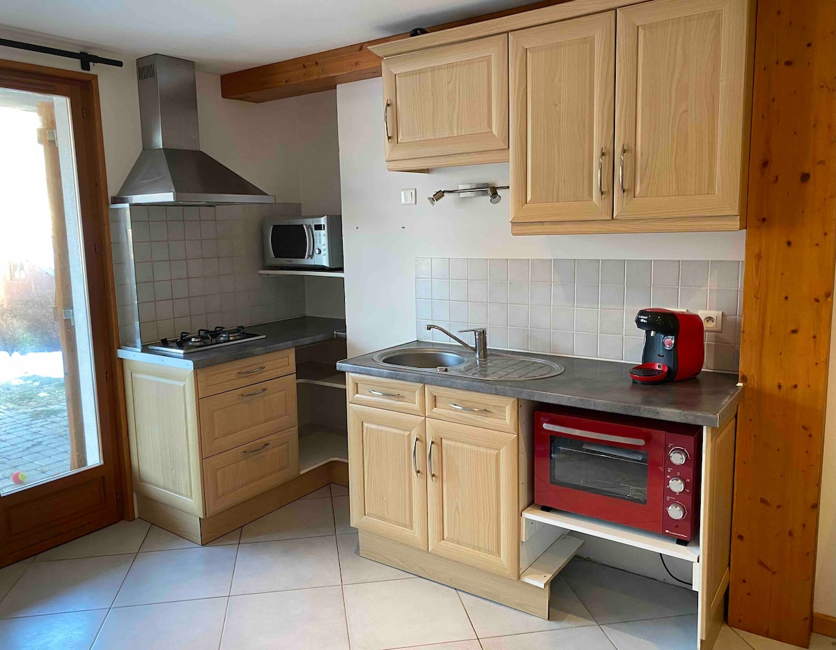 Venga a descubrir nuestro Dominio en el corazón del campo de Baulméranne y viva al ritmo de la naturaleza. Nuestro apartamento le aportará comodidad por su cocina totalmente equipada, su baño, una zona de relax y zona para dormir (cama de 140x200) con armario y escritorio. Además, su terraza privada y su entrada independiente le ofrecerán libertad y tranquilidad. El lugar ideal para recargar energías.... Aparcamiento y wifi gratuito . Lago y Baños termales a 10 minutos en coche. Esquí a 15 minutos en coche.