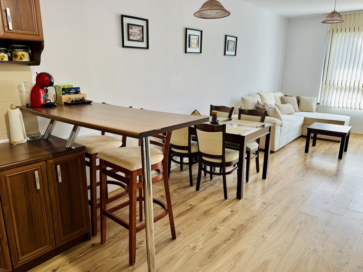 Elegante departamento céntrico con impresionantes vistas a la ciudad | 2 dormitorios + balcón | Varna Bienvenido a EpiCenter Varna, ¡tu elegante escapada de 2 dormitorios en el corazón de la ciudad! Nuestro departamento de 58 metros cuadrados cuenta con una ubicación inmejorable, un acogedor salón, una cocina totalmente equipada, un balcón con vistas, un baño moderno y wifi rápido. A solo unos pasos del Jardín del Mar, la playa, los restaurantes, las tiendas y la vida nocturna. Ideal para parejas o familias que buscan comodidad y conveniencia en un solo lugar.