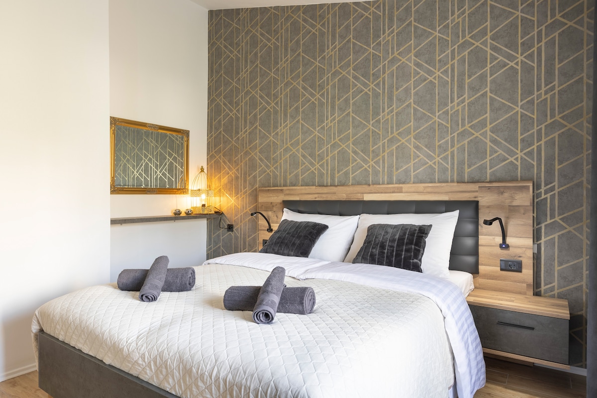 El espacio está climatizado (dos aires acondicionados, uno en el comedor y otro en el dormitorio principal) y el aire acondicionado no se cobra por separado. Los huéspedes tienen acceso a Wi-Fi gratuito. Los huéspedes también tienen a su disposición 2 - 4 plazas de aparcamiento en el patio. El edificio se completó en 2017 y todo es completamente nuevo (baño, cocina, habitaciones...). El amplio dormitorio principal se extiende por toda la planta superior del edificio. Los huéspedes tienen a su disposición una parrilla al aire libre y un balcón dentro del apartamento.