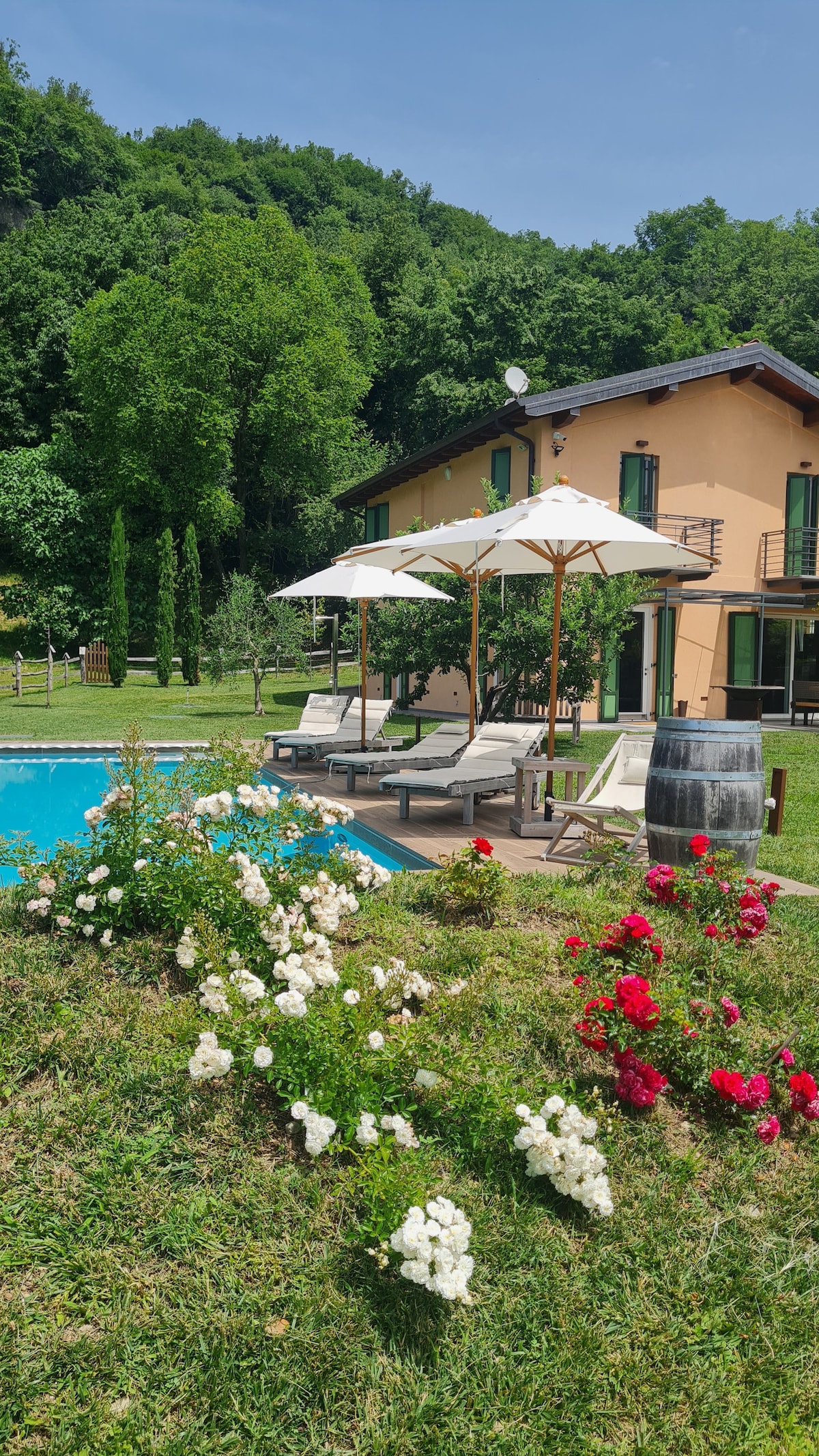Unobtainable completely renovated farmhouse a few steps from Lake Garda, with 18 beds max and surrounded by 10,000 square meters of green. Suitable for groups of friends or big families who want to relax and stay together. It is forbitten to do parties or noise during night hours. Me and my family , we live together in a separate indipendent building in front of the cascina.