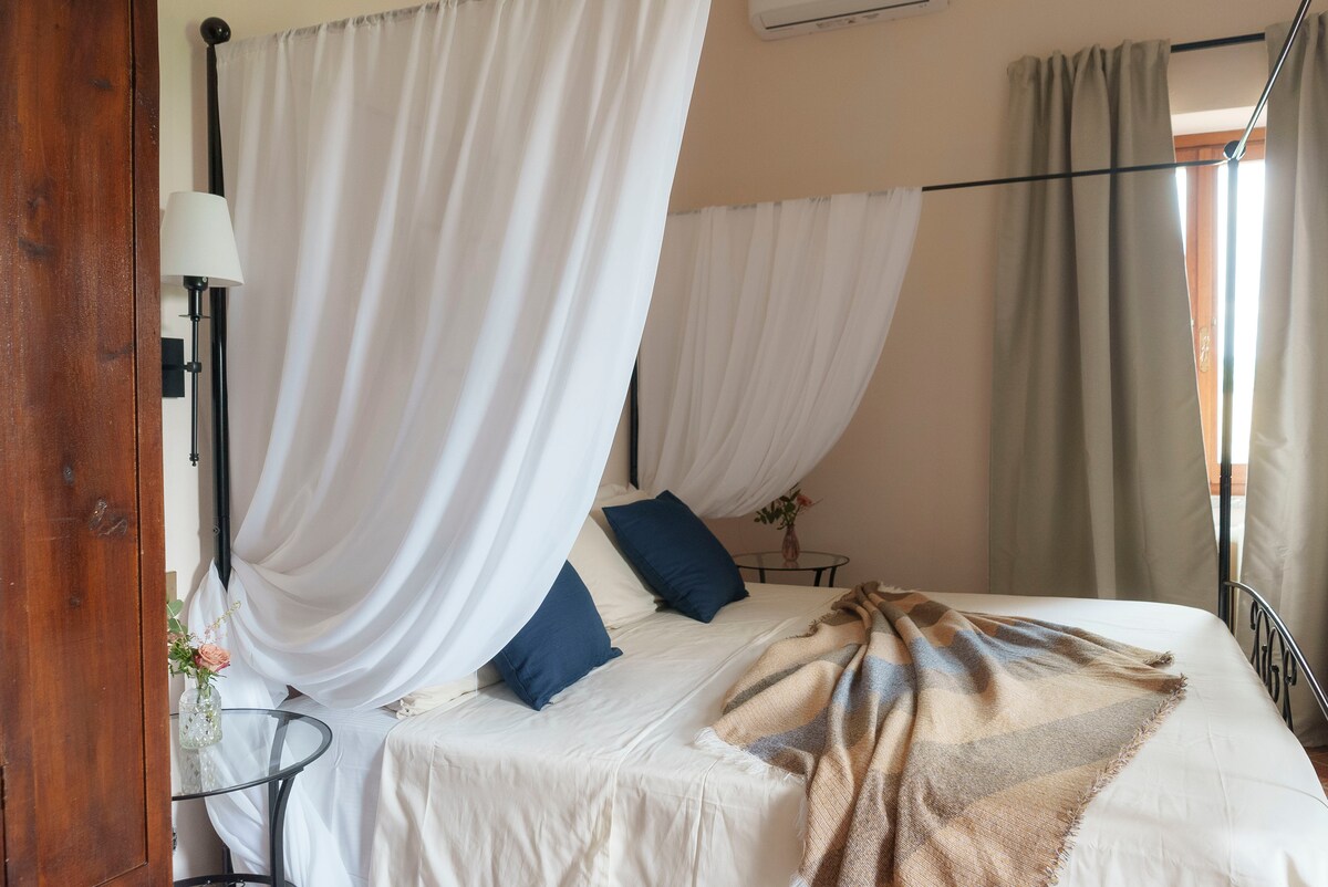 Una soluzione accogliente per piccoli gruppi o famiglie: la nostra camera tripla offre un letto matrimoniale e un letto singolo in un ambiente luminoso e raffinato. Goditi la tranquillità della campagna con tutti i comfort: bagno privato, aria condizionata, TV, minibar e colazione inclusa.