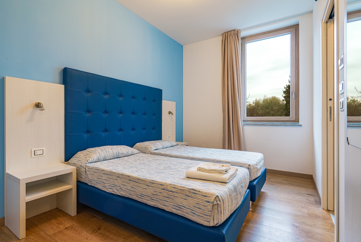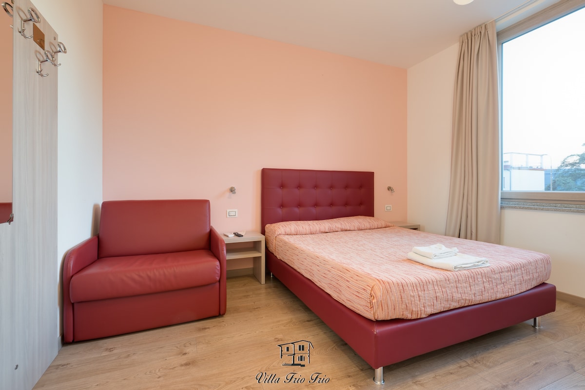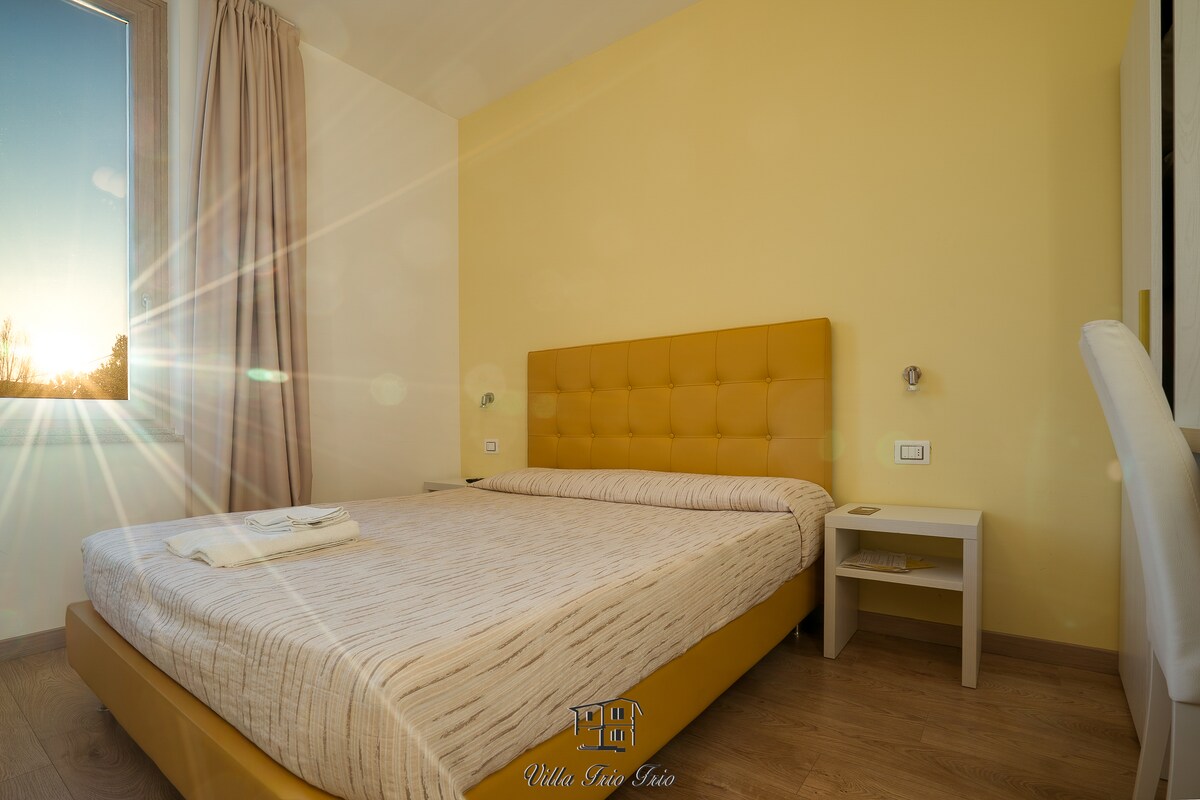 La camera tripla chiamata Porta Aquileia è situata al piano terra e offre diverse opzioni di sistemazione: un letto matrimoniale e un letto singolo, oppure tre letti singoli. Il bagno privato è dotato di frigobar, wi-fi, bollitore con tisane, climatizzazione e colazione inclusa. Inoltre, la suite dispone di un piccolo spazio all'aperto per momenti di relax o per gustare la colazione in intimità.