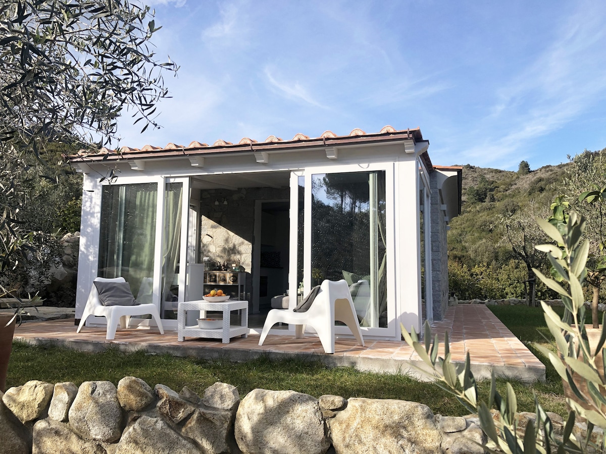 Villa a few minutes from the sea, surrounded by nature. It consists of: a bedroom, a bathroom, kitchen area, living room with veranda, entrance and independent garden. Perfect for those who love tranquility and high-level finishes. The living room with the veranda allows you to enjoy the beauty of the surrounding nature at any time of day. A cycle of Jacuzzi is complimentary with every booking.