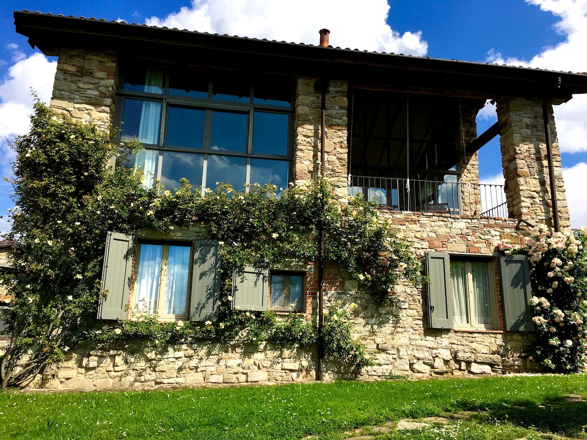 Casa colonica anni '60, con un ampio sottotetto mansardato dove si trova una grande camerata, le due camere e il bagno. Al p t. cucina (sovrapprezzo giornaliero), bagno e grande sala giochi. Intorno un vasto prato, una cascina (con tavoli e panche per 40 persone), una zona giochi attrezzata per bambini. Contesto: boschi, vigneti, possibilità di belle passeggiate a piedi, cavallo, mountain bike, circuito Via Francigena, Cammino degli Abati.